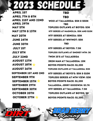We have most forms of social media, be sure to check us out on each! Tiktok: Therockledgerocket Youtube: Days of Dirt with Brad Berry Racing Facebook: Brad Berry Racing #27 Instragram: The rockledge...read more